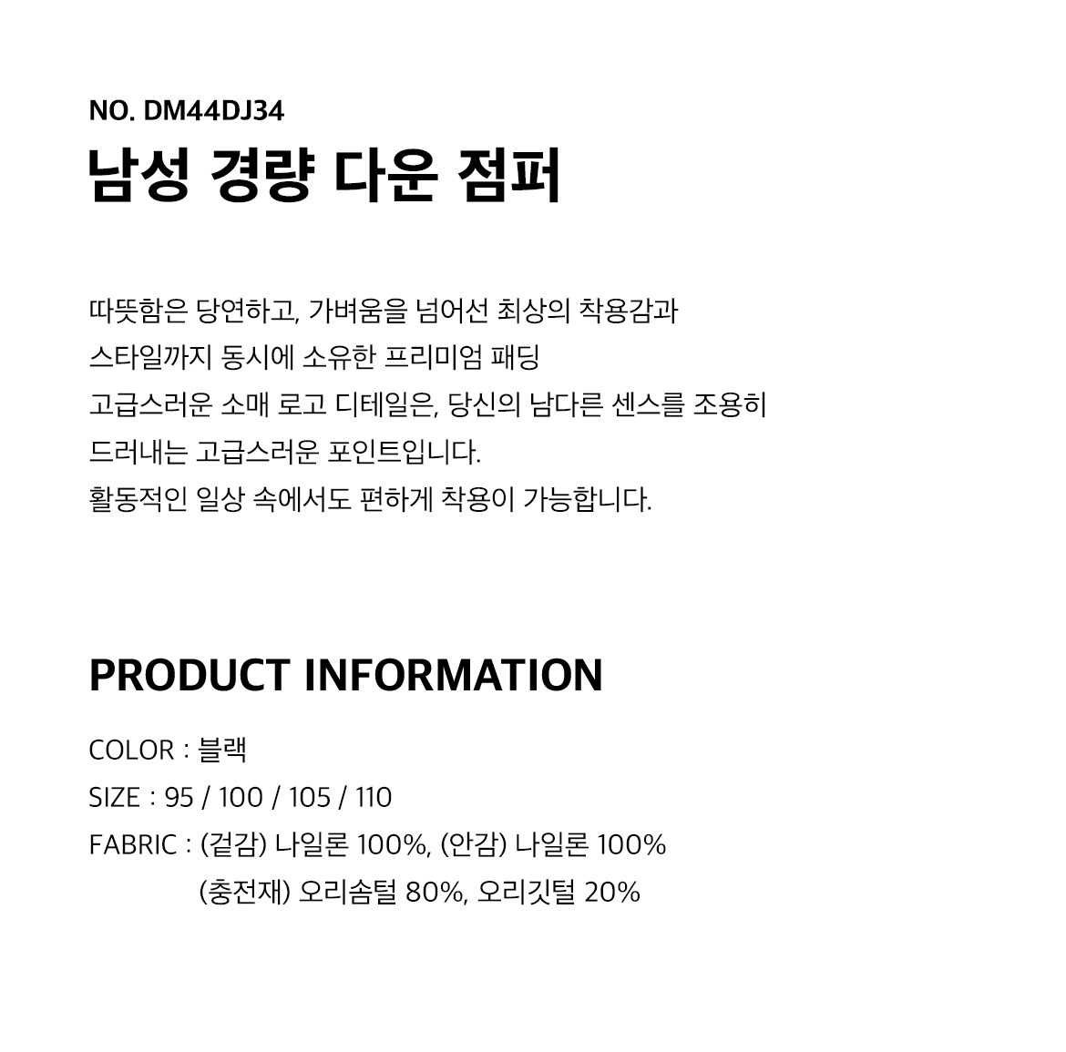 드루 골프 남성 경량 다운점퍼 DM44DJ34BK