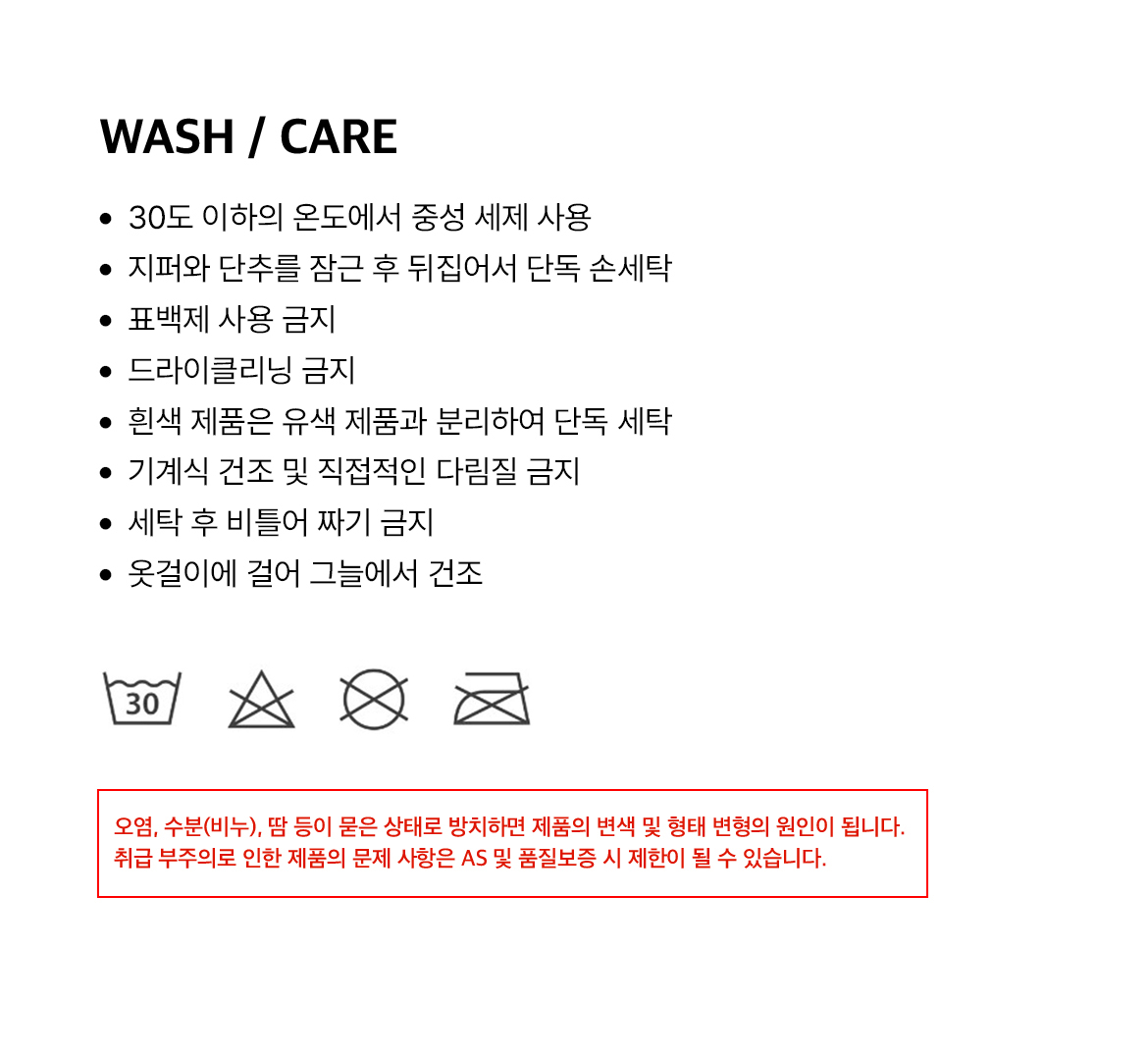 세탁방법 및 취급시 주의사항