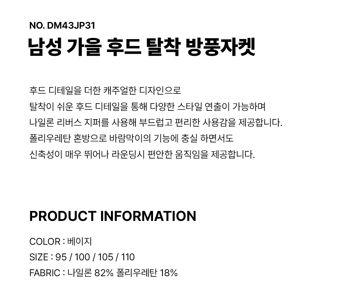 드루 남성 가을 후드 탈착 방풍자켓 DM43JP31_BE