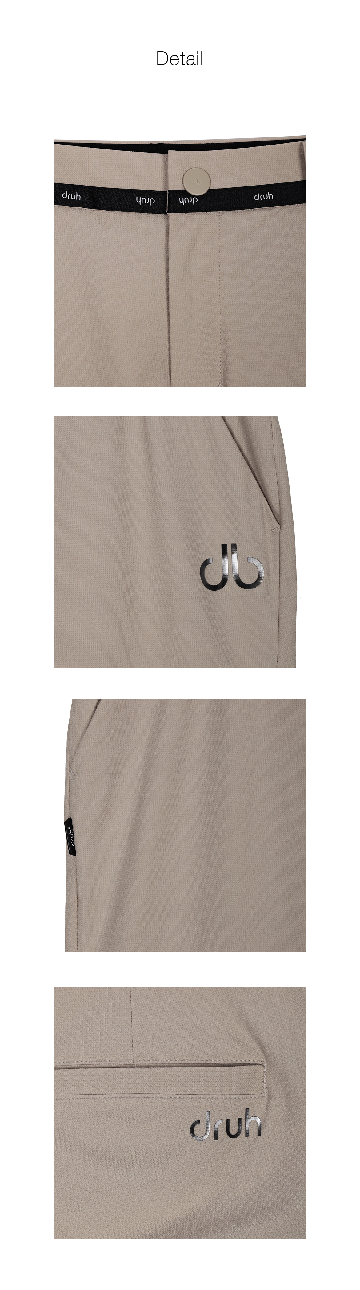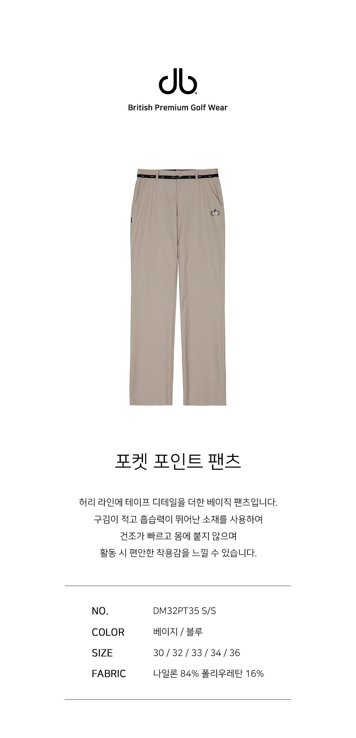 허리 라인에 테이프 디테일을 더한 베이직 팬츠입니다.