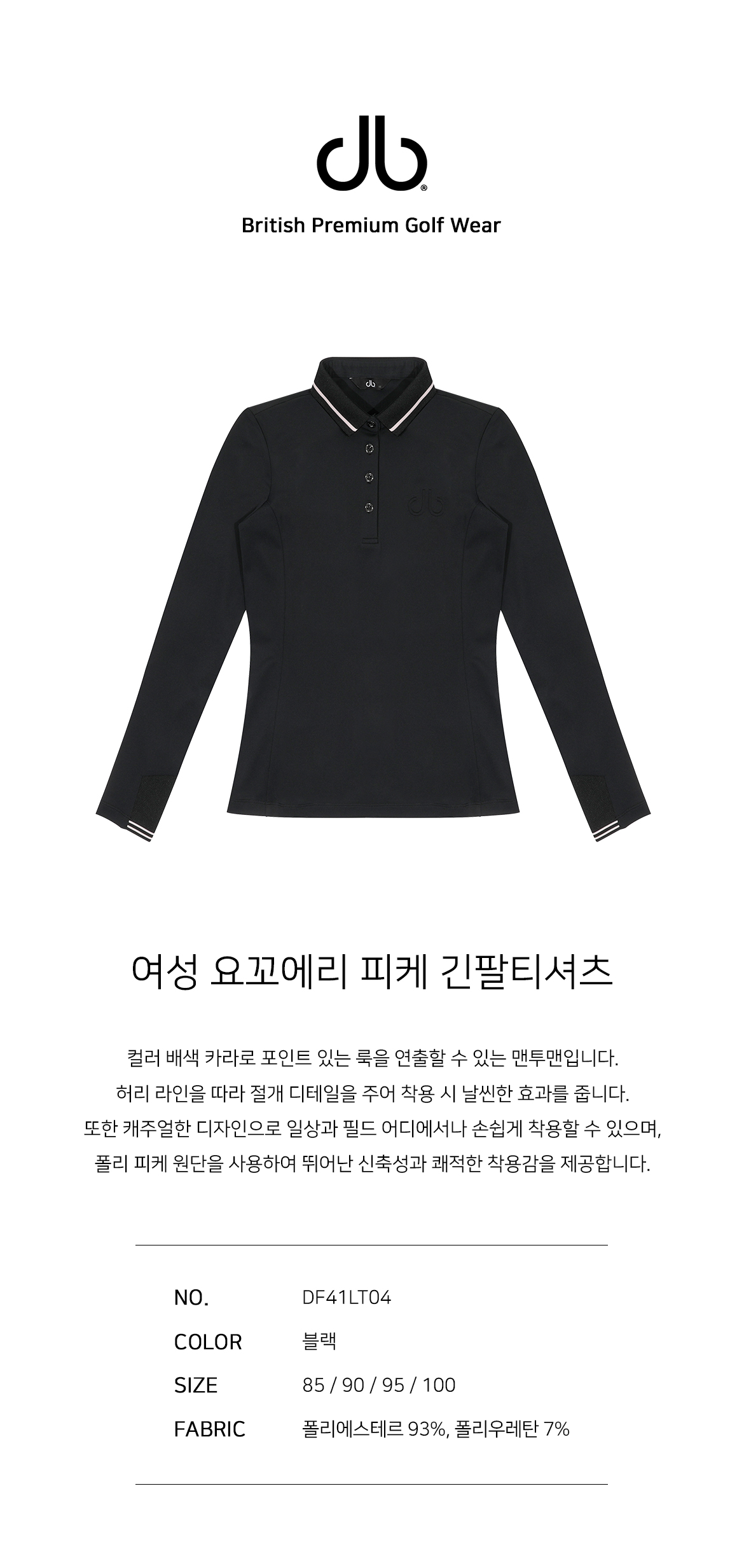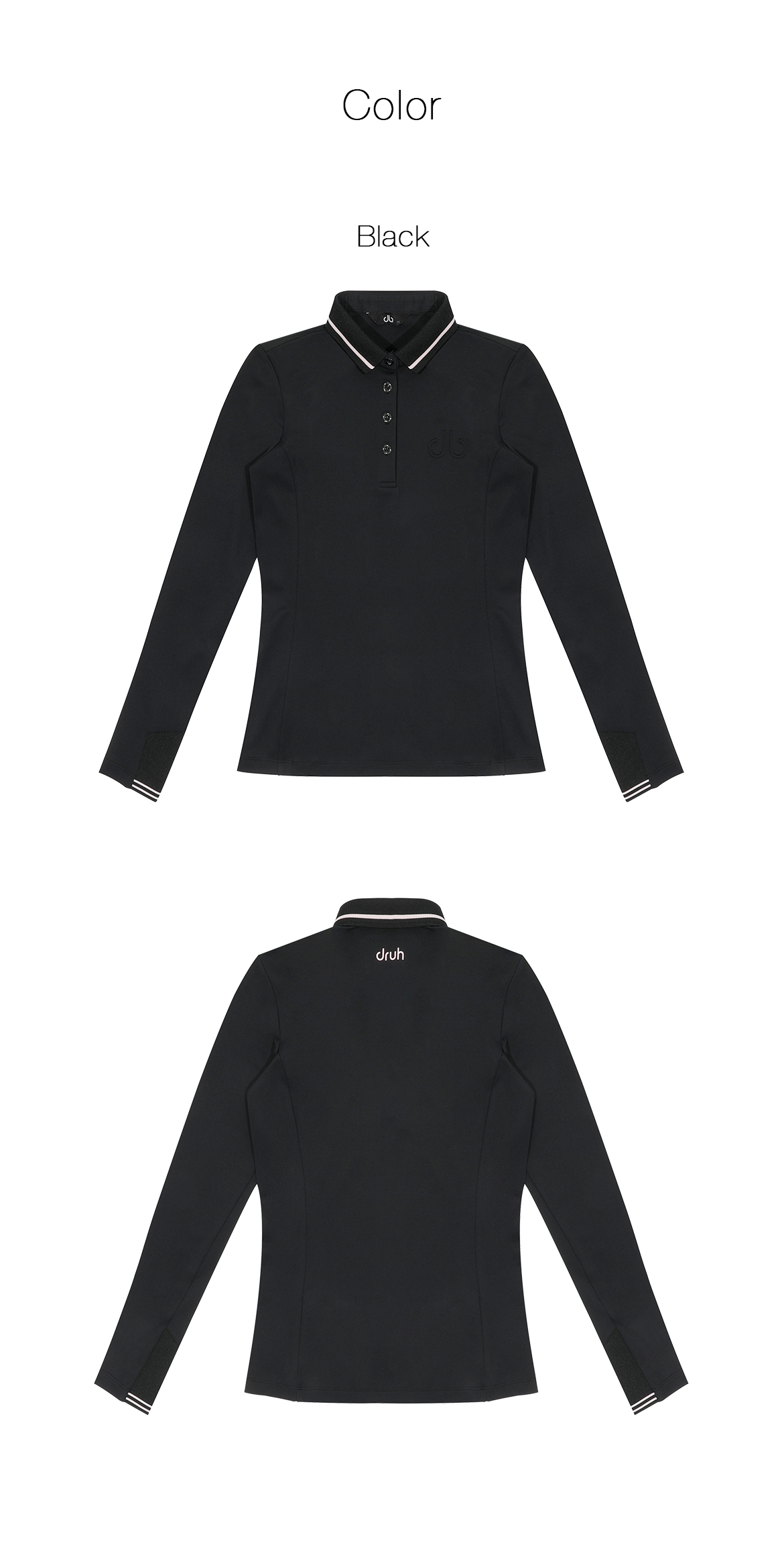 드루 여성 요꼬에리 피케 긴팔티셔츠 DF41LT04_BLACK